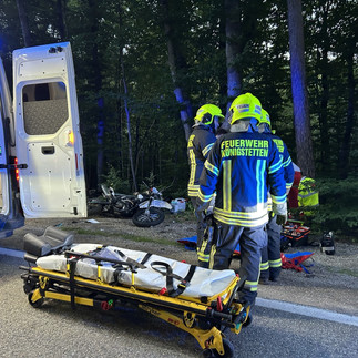 Situation beim Eintreffen: 2 Motorräder sind aus unbekannter Ursache frontal zusammengestoßen und befanden sich am Waldrand. First Responder und Rettung waren bereits vor Ort und versorgten die verletzten Fahrer. Polizei und 2 Christophorus auf Anfahrt.