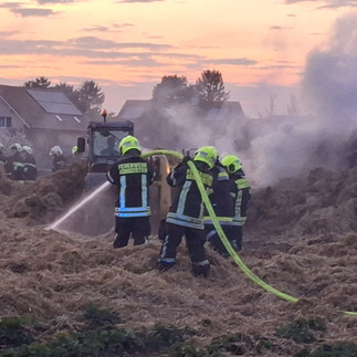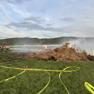 Tätigkeit am Einsatzort: Wir unterstützten die örtliche Feuerwehr bei der Löschwasserversorgung, dazu wurde unser TLFA für die Wasserversorgung in einen Pendelverkehr eingebunden. Weiters unterstützen wir bei den Löscharbeiten. Ein ATS-Trupp verteilte die brennenden Strohballen, um Glutnester gezielt ablöschen zu können.