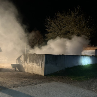 Tätigkeit am Einsatzort: Sofort wurde der erste Löschangriff mit unserem HD-Rohr unter schwerem Atemschutz durchgeführt. Zeitgleich wurde eine Zubringleitung für unser TLFA aufgebaut und mit der TS (Tragkraftspritze) aus dem hauseigenen Brunnen eine Wasserversorgung aufgebaut. Zusätzlich wurde mit einem weiterem C-Rohr beim Löschen unterstützt. Während den Löscharbeiten wurde immer wieder der Mist auseinandergeteilt, abgelöscht und mittels Wärmebildkamera kontrolliert. Gegen 05:45 konnte Brandaus gemeldet werden.